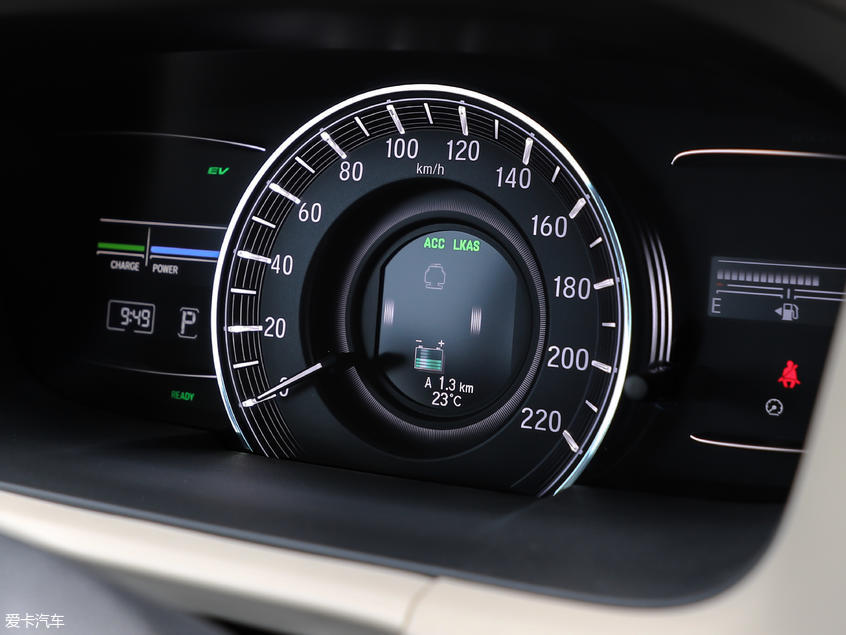 来到内饰部分,奥德赛锐混动同样延续了汽油版车型的内饰布局和设计风格,并在细节部分稍作调整,其中车内仪表盘左侧转速表的位置被替换为混动车型专属的动能指示表,中央的液晶屏内还可显示动能流动示意图。